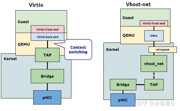 - I/O设备尽量使用准虚拟化(virtio 和 vhost_net)